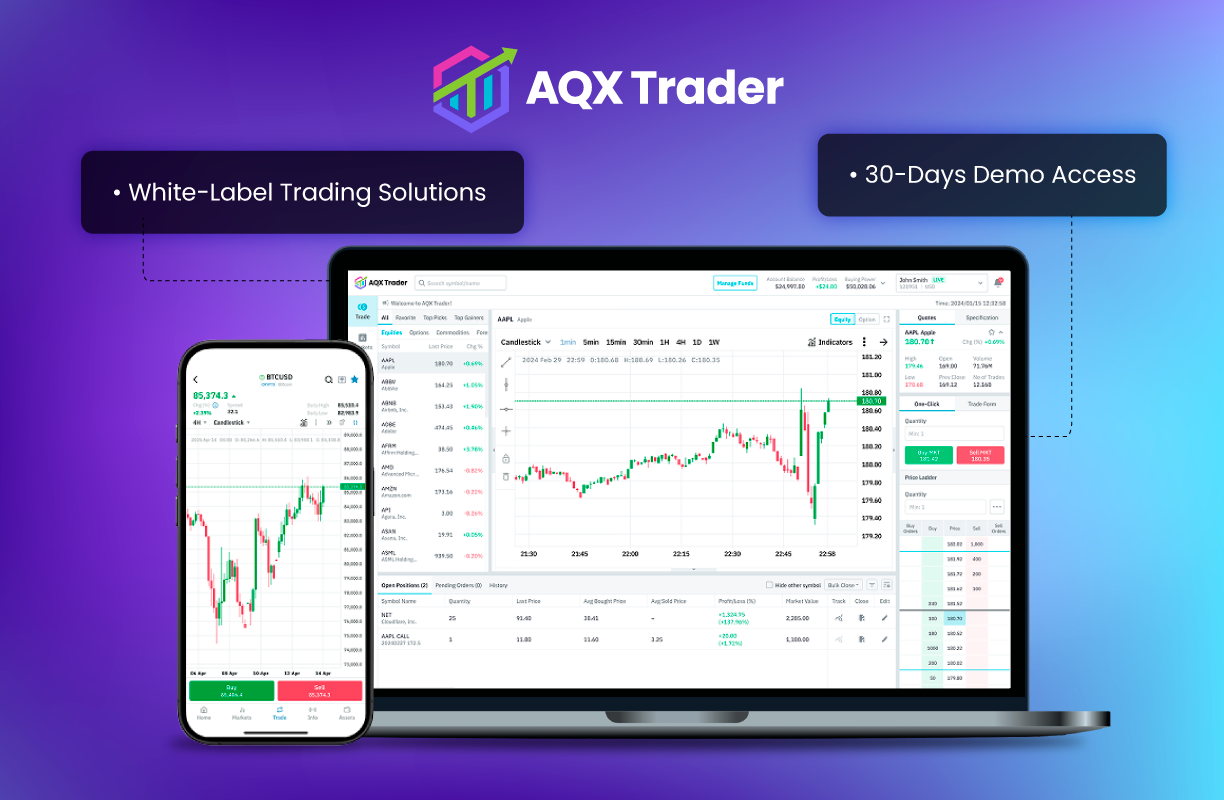 AQX Trader is a B2B white-label trading platform designed for brokers and financial institutions to provide custom trading solutions under their own brand.